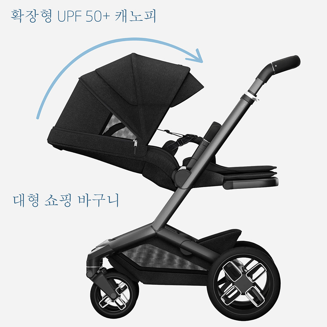 페임의 인체공학적 시트는 아이가 침대처럼 완전히 누워 자거나 앉아서 주행을 즐길 때 언제나 럭셔리한 공간을 제공합니다. 부드러운 패딩과 클라이마플로우(ClimaFlow) 메쉬가 적용된 시트는 최적의 체온 조절을 도와 일 년 내내 아이에게 쾌적함을 선사합니다. 확장 가능한 대형 UPF 50+ 캐노피는 아이를 햇빛으로부터 최대한 보호하며, 투명 관찰창을 통해 공기 순환을 돕습니다.