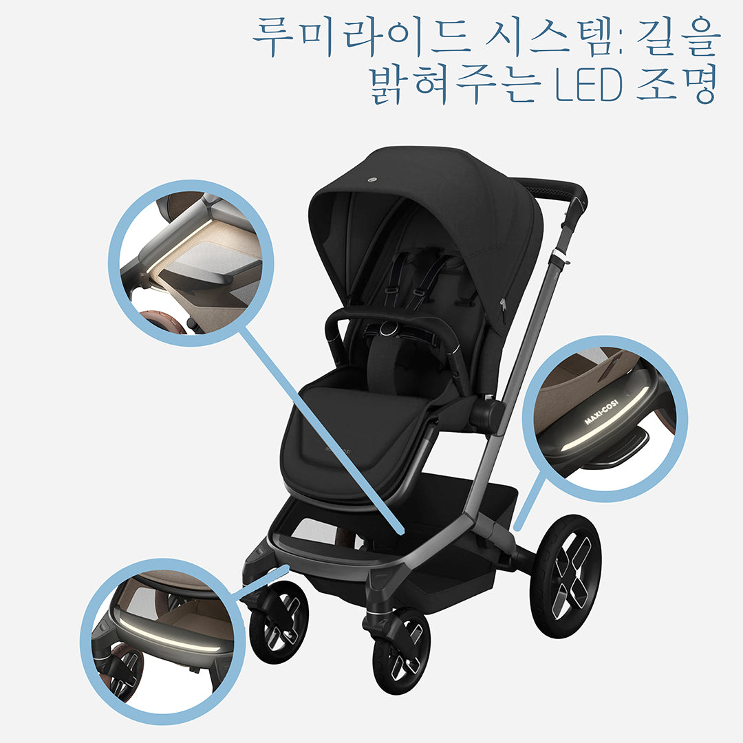페임은 부모의 매일을 더 편하게, 아이의 모든 이동을 더 안락하게 만드는 혁신적인 기능들로 가득합니다. 올터레인 휠(All-terrain wheels)과 코지크루즈(CosiCruise) 서스펜션 덕분에 어디를 가든 아이는 가장 부드러운 승차감을 누릴 수 있습니다. 부모를 위해서는 쉽고 컴팩트한 폴딩 디자인을 적용해 삶의 편의를 높였습니다. 페임은 전방을 비춰주는 루미라이드(LumiRide) 시스템을 탑재하여 어두운 밤에도 안전하게 시야를 확보할 수 있으며, 이동 중 휴대폰 충전이 가능한 통합형 파워뱅크도 갖추고 있습니다.